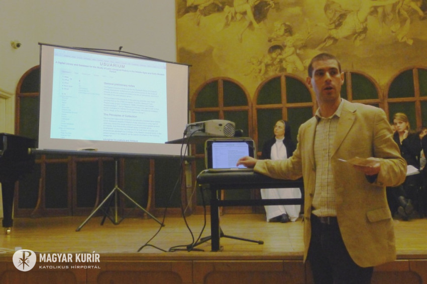 Földváry Miklós a nyugati liturgiatörténet forrásainak új adatbázisát, az Usuariumot mutatta be. A világviszonylatban is egyedülálló honlap létrejöttéhez egyrészt az a fölismerés volt szükséges, hogy a forrásokat nem koruk vagy őrzési helyük, hanem az őket használó közösségek szokásrendje (úzusa) alapján érdemes csoportosítani. Másik feltétele a digitális technológia robbanásszerű fejlődése volt, amely lehetővé tette korábban elképzelhetetlen mennyiségű forrásmásolat őrzését és egységes szempontú leírását.
