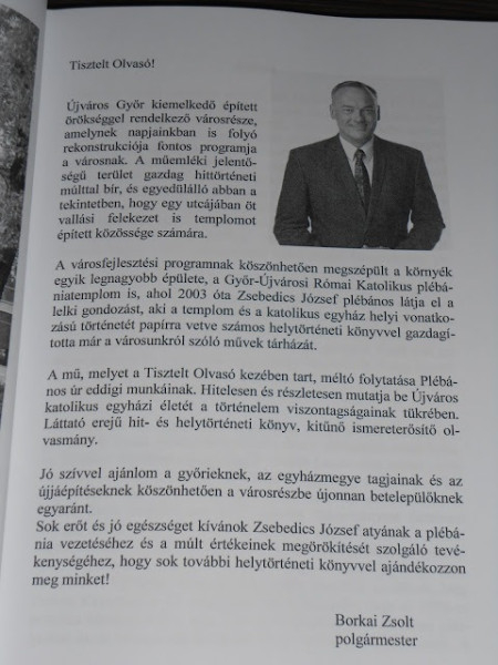 A bemutató végén a plébános dedikálta az újonnan megjelent könyvet, mely megvásárolható a győr-szigeti és győr-újvárosi templomokban a vasárnapi szentmisék után, illetve a plébánián (Győr, Simor János püspök tere 6.).