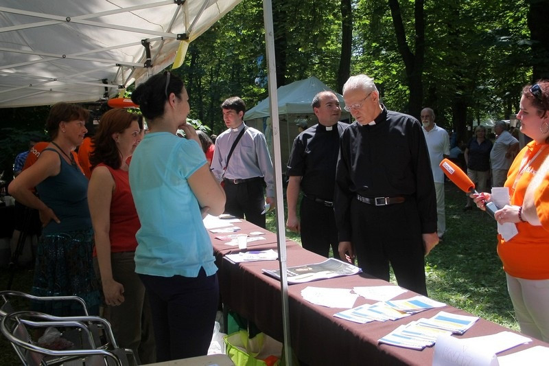 A máriaremetei kegytemplom szabadtéri oltárnál Kunszabó Zoltán állandó diakónus folytatott kötetlen beszélgetést Erdő Péter bíborossal. A főpásztor az izraeli és palesztin elnökök nagyon rövid időn belül létrejött vatikáni imatalálkozójáról beszélt azzal kapcsolatban, hogy a pünkösd a meglepetések ideje. A bíboros szerint az volt igazán egyedülálló e kezdeményezéssel kapcsolatban, hogy az Apostoli Szentszék államtitkárságán keresztül gyakorlatilag másfél nap alatt megszervezte, hogy a világegyház imája kísérje a találkozót. A technika erre másfél évtizeddel ezelőtt még biztos nem adott volna lehetőséget.
