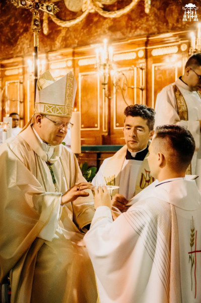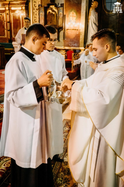 A felszentelő ima végén az újonnan felszentelt papok felálltak, majd stólába és miseruhába öltöztették őket. Ezt követően Böcskei László püspök a felszentelt papok kezét krizmával kente meg, ami a kiválasztás jele. A kehely és a paténa átadása azt jelezte, hogy az áldozópap fő feladata a szentmise bemutatása. A papszentelés utolsó mozzanataként a püspök békecsókot adott az újonnan felszentelt papoknak, akiket a jelen lévő papok szintén békecsókkal köszöntöttek a papi közösségben. A szentmise a hitvallással folytatódott. Az újonnan felszentelt papok e pillanattól főpásztoruk mellett szolgáltak tovább.