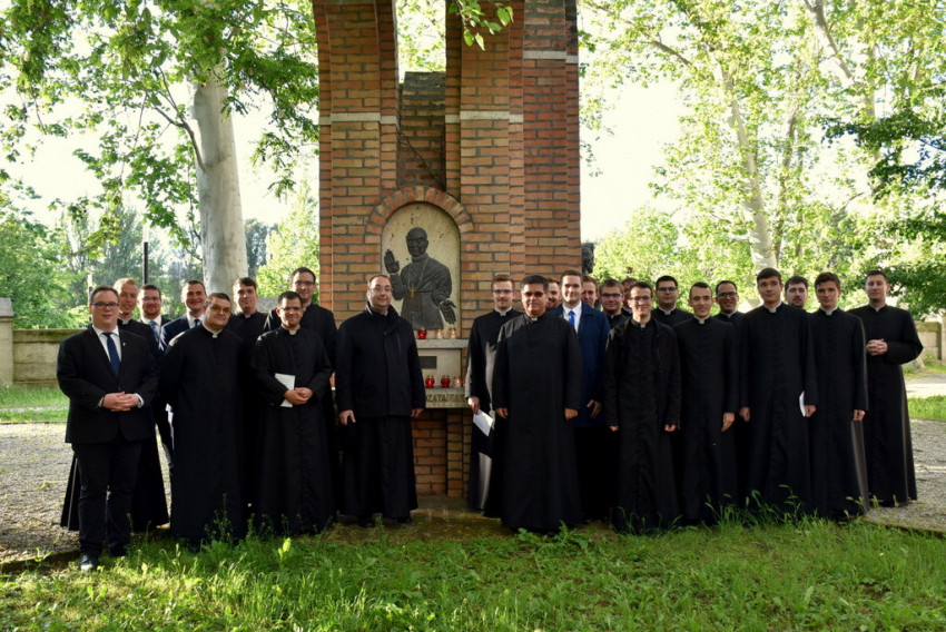 A kápolnában kezdődő megemlékezésünket Bognár István spirituális atya vezette, a kezdőéneket és bevezető imát követően mécsessel, énekelve vonultunk le a szeminárium udvarán található emlékműhöz. Itt felelevenítettük Apor püspök életének fontosabb eseményeit, vértanúhalálának körülményeit. Rövid csendet követően egyenként helyeztük el a mécseseinket az emlékművön. Ezt követte a vértanú püspök utolsó húsvéti beszédének egy részlete, melyet Simon Dávid diakónus olvasott fel. A megemlékezés végén papi hivatásokért imádkoztunk.