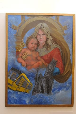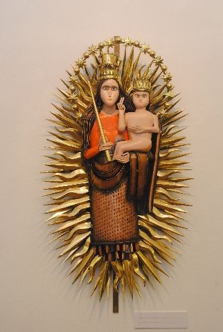 A Kárpát-medence ötvenöt magyar művészének alkotásai – festmények, szobrok, rajzok, fotók – más-más módon, de ugyanazt ábrázolják: Mária, illetve a Szent István által neki felajánlott ország és a magyarság kapcsolatát. Több ismert művész – Aknay János, Cseh Tamás, Gyulai Líviusz, Hager Ritta, Jankovics Marcell, Kő Pál, Melocco Miklós, Makovecz Imre, Olasz Ferenc, Péreli Zsuzsa, Petrás Mária, Somogyi Győző – és mások alkotásai is megtekinthetők a tárlaton.