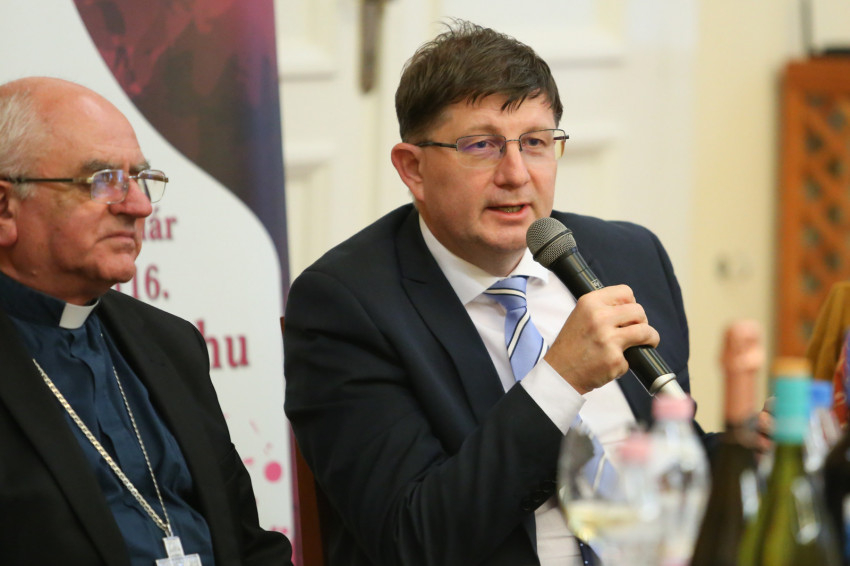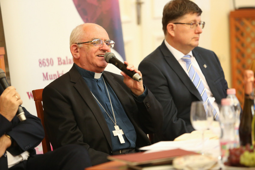 A bor és bibliai ételek kóstolásával egybekötött esten Lőrincz Sándor újságíró kérdezte Varga László püspököt a kereszténységben, a Bibliában, illetve a püspöki hivatalban megélt örömről és humorról.