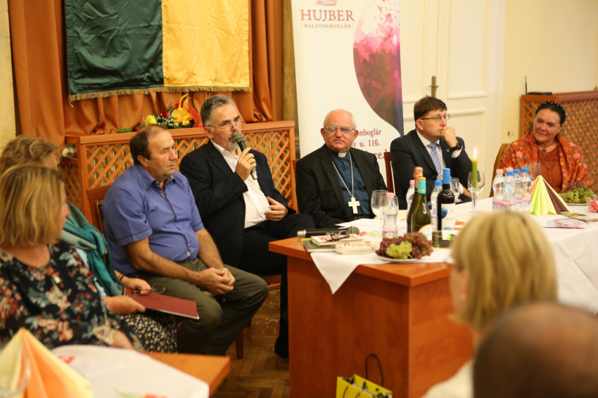 Az esten közreműködött Tolnai Mária szépirodalmi idézetek felolvasásával, majd Hujber László, a balatonboglári Hujber Pincészet tulajdonosa kínálta kóstolásra borait.