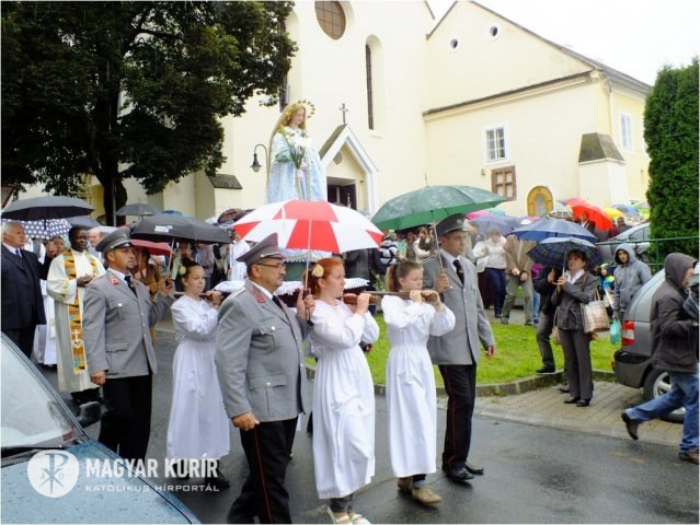Az ünnepi szentmise után körmenetet tartottak, amelyen az eső ellenére is több százan kísérték a Mária-szobrot.