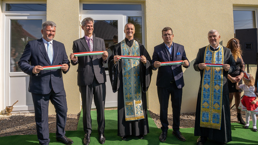 A beszédek után ünnepélyes szalagátvágás következett, majd a paptestvérek imádságával kísérve Papp Tibor és Máté Csaba megáldotta az épületet.