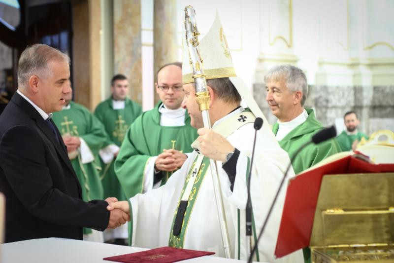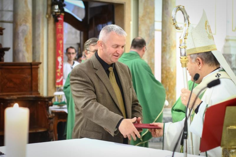 A szentmise végén a főpásztor átadta a Koszter-díjat Bobár András és Fischer Róbert hittanároknak.