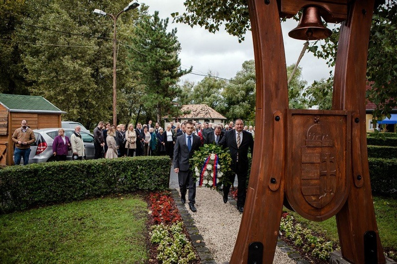 Az ünnepség részeként megkoszorúzták a haranglábat is.