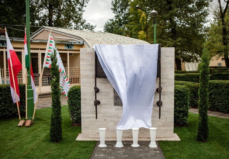 Németh Szilárd országgyűlési képviselő mondott avatóbeszédet, az emlékművet pedig Spányi Antal székesfehérvári megyéspüspök áldotta meg. Az eseményen részt vett Borbély Lénárd polgármester, Ábel Attila és Morovik Attila alpolgármesterek, Jerzy Snopek, Lengyelország budapesti nagykövete, valamint Csúcs Lászlóné, az Országgyűlés lengyel nemzetiségi szószólója. Az emlékművet Sárosi Tibor csepeli szobrász alkotta.