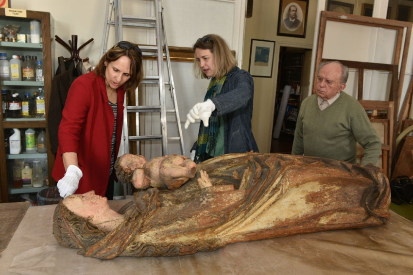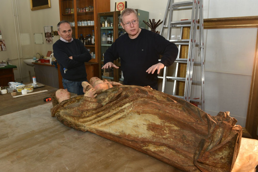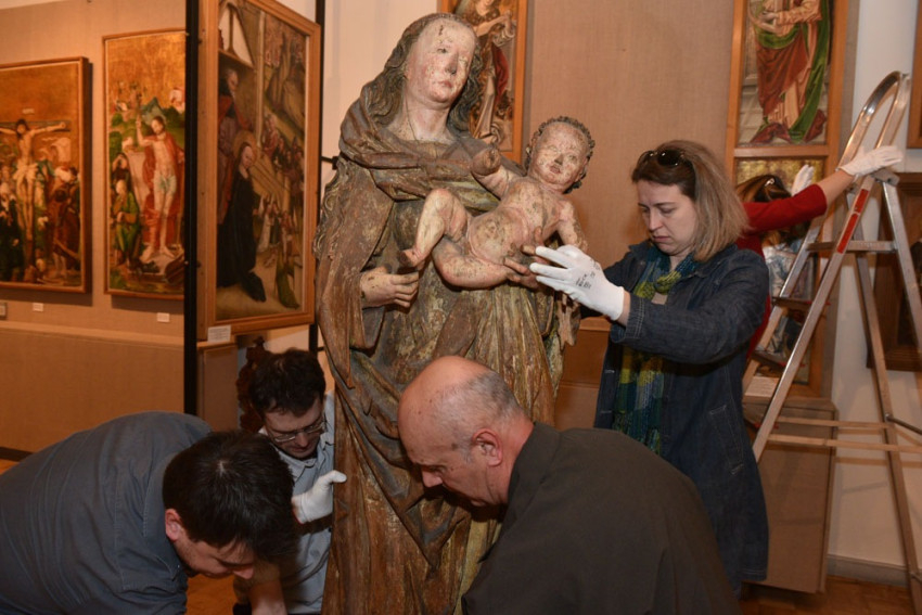 A padláson való tárolás nyilván sokat ártott a szobor állapotának, leginkább talán ekkor támadhatta meg az a súlyos rovarfertőzés, amely szinte szivacsossá változtatta egyes részeit. A szobrot a múzeum számára Lepold Antal vásárolta meg 1941-ben az alistáli plébániától, majd restaurálására 1972-73-ban került sor az akkor korszerűnek számító restaurátori módszerek alkalmazásával; a szobor aktuális állapota azonban szükségessé tette a korábbi munkák áttekintését, a szobor újabb vizsgálatát. Mint a Tuzson Eszter faszobrász-restaurátor által végzett mikroszkópos faanyagvizsgálat kimutatta, a szobor, a kor fafaragásában Európának ezen a részén általánosan kedvelt, nagylevelű hársfából készült. Felülete olyannyira kopott, hogy szabad szemmel is több jelenség megfigyelhető volt, a több korból származó töredékes festésrétegek azonban, mint kiderült, így is jelentős titkokat takartak még, a CT vizsgálat pedig kiváló lehetőséget kínált számos művészettörténeti és restaurátori kérdés megválaszolására.