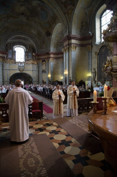 A szentmise záró áldása előtt a jubiláló atyák külön megáldották a jelenlevőket.