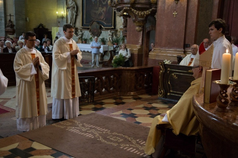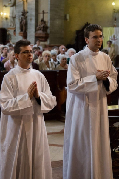 A szentmisébe illesztett szentelés szertartása a jelöltek bemutatásával és kiválasztásával kezdődött. Hajdu Ferenc provikárius a hagyományoknak megfelelően kérte a megyéspüspöktől Bozai Márton és Oravecki Attila Ferenc diakónussá szentelését. A püspök méltónak találta kiválasztottakat a szerpapság rendjére.