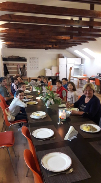 – Jelenleg a plébánia tetőterében kialakított lakrészben tizenegyen laknak: a legkisebb négyéves, a legnagyobb pedig 15 éves, kilencedikes. Nemrég tizennégyen voltak. Mindig akad pár gyerek, aki nehezen tud beilleszkedni, vagy kiderül, hogy olyan gondok és sérülések vannak bennük, amik túlhaladják a mi határainkat. Ilyenkor a szülővel egyeztetve, velük megbeszélve javasolunk más megoldásokat. A gyermekek a tanév elején érkeznek, háromhetenként hazalátogatnak egy-egy hétvégére. Mivel nem árva gyerekek, mi támogatjuk is, hogy egészséges kapcsolat maradjon köztük és szüleik, hozzátartozóik között. Nyár elejéig, a tanév végéig laknak nálunk, de nyár közepén kéthetes tábort szervezünk számukra. Nagyon nagy kiesés a vakáció, ezért a tábor fontos lehetőség a találkozásra, és arra, hogy a tanév közben befektetett nevelési munka valamennyire megmaradjon.