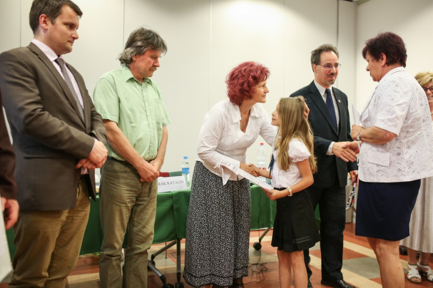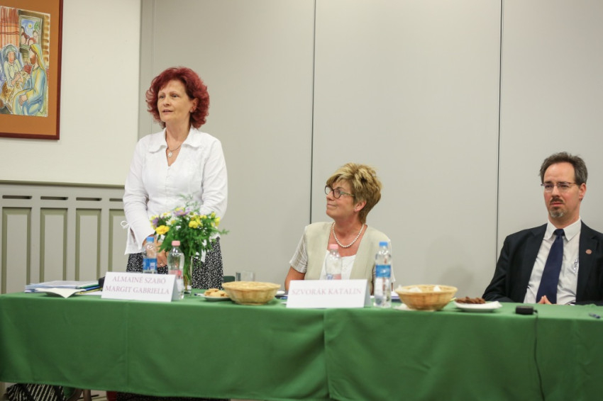 Almainé Szabó Margit Gabriella ének-zene szakos pedagógus, szaktanácsadó, a zsűri tagja elsősorban a pedagógusokhoz szólt. Elmondta, hogy a népdal és a népének a legmagasabb rendű formában tárja a gyermekek elé a nemzeti értékeinket éppúgy, mint azokat, amit a zenével szeretnénk megtanítani. A verseny során olyan csodálatos értékek tárultak föl, amit a későbbiekben is fontos táplálni. Elmondta azt is, hogy fontos, hogy egy tematikán belül is különböző énekeket ismerjenek a diákok a magabiztosság elnyerése céljából, illetve mennyire fontos, hogy a külső megjelenésünk által a szívünk is ünneplőbe öltözzön.