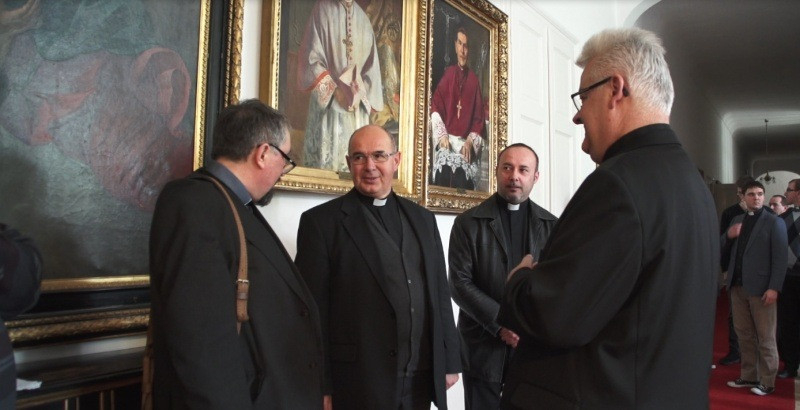 A püspöki palotában találkoztak Spányi Antal megyéspüspökkel, aki örömmel köszöntötte vendégeit. Megtekintették a barokk épület termeit, és imádkoztak a kápolnában a magyar szent család ereklyéi előtt.