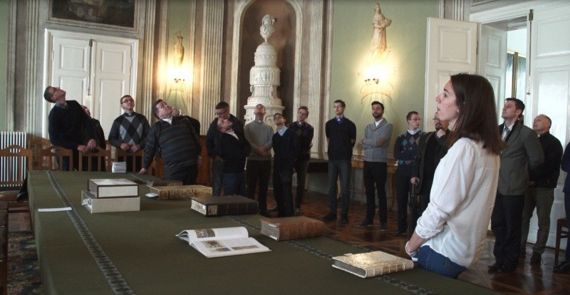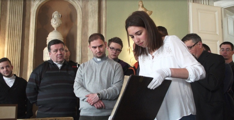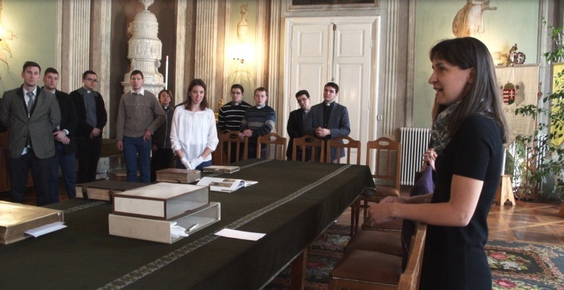 Ezután a muzeális könyvtári gyűjteménybe kaptak betekintést a palota dísztermében. Végül tárlatvezetéssel tekintették meg az egyházmegyei múzeum Szentek titkai kiállítását és a Prohászka-emlékkiállítást.