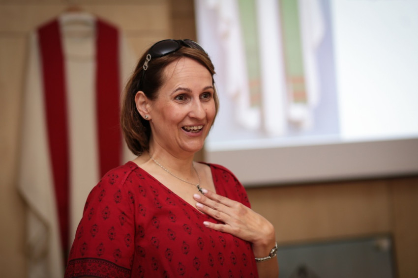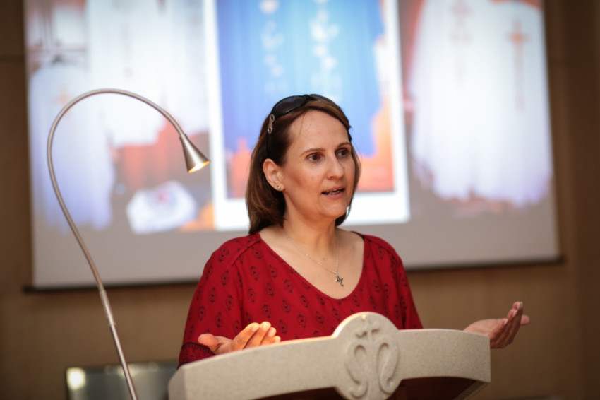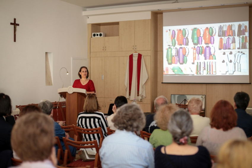 Kontsek Ildikó ezután bemutatta a II. vatikáni zsinat Sacrosanctum Concilium kezdetű konstitúciójának szent liturgiára vonatkozó főbb előírásait. A legfontosabb kitétel ebben – és egyben újdonság – az, hogy a saját korszak kifejezési formáihoz merjünk bátran alkalmazkodni. Ez korábban egyáltalán nem volt evidencia, a modern művészet nagyon nehezen tört be az egyház életébe, csak a zsinat óta épültek nagy számban modern templomok, és készültek ehhez igazodó berendezési tárgyak. Azt viszont hangsúlyozza a zsinati dokumentum, hogy az elkészült ruháknak és tárgyaknak alkalmazkodniuk kell a liturgiához és a liturgikus térhez, az üres pompa kerülendő.