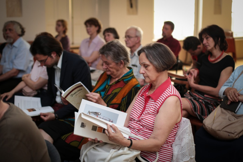 A művészettörténész előadó kitért a történelmi előzményekre is. Ismertette, már jóval a zsinat előtt voltak kísérletek a liturgia és vele összefüggésben a liturgikus öltözet megújítására. Kontsek Ildikó beszélt többek között a 19. században élt Franz Bock aacheni kanonokról, aki háromkötetes könyvet írt a középkori liturgikus ruházatok történetéről, krefeldi plébánosként kiállításokat rendezett középkori miseruhákból, és példának állította azokat saját kora textilművészete elé. Tevékenyen részt vett egy műhely megalapításában is, elősegítette, hogy ott régi minták alapján készüljenek miseruhák. A bécs melletti Döblingbe is letelepedett szerzetesnővérek is ezeket az újfajta – historizáló módon hímzett – miseruhákat készítették. Innen származik az esztergomi főszékesegyház miseruháknak egy része is.