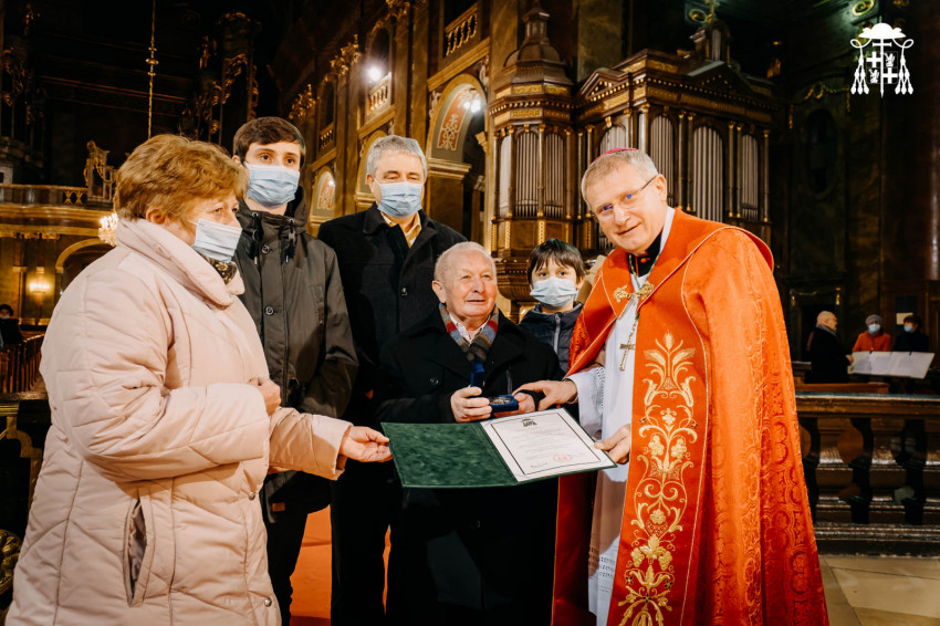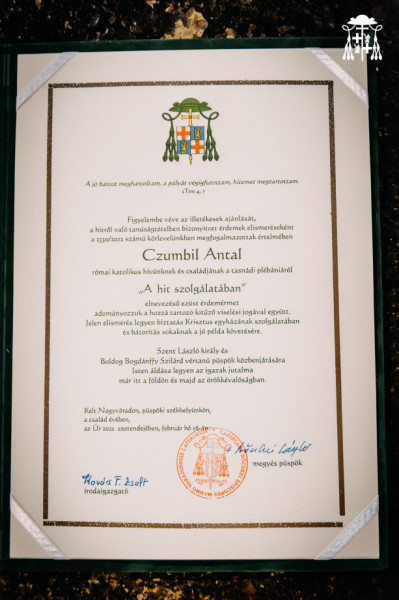 Az ünnepi vesperást követően Pék Sándor esperes, egykori tasnádi plébános mutatta be az idei kitüntetettet, Czumbil Antal kántort.