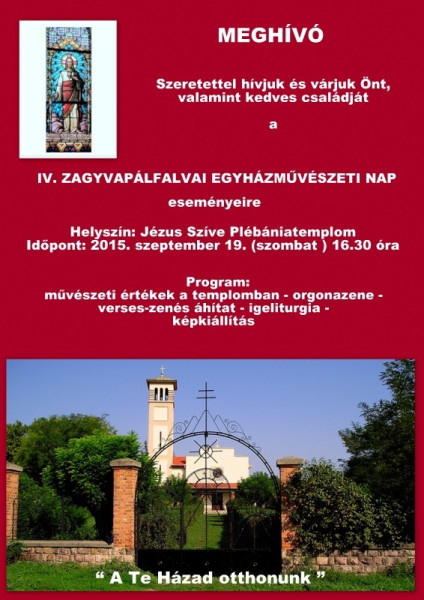 Immár hagyomány, hogy az egyházközség egyházművészeti napot rendez ősszel Zagyvapálfalván, a Jézus Szíve-templomban azzal a nem titkolt szándékkal, hogy szívet, lelket, szemet gyönyörködtetve, a művészet eszközeivel mutassák be a helyi értékeket, és közös imádságban kérjék Isten segítségét.