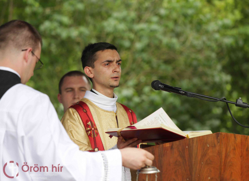 Ezt követően a megyéspüspök Szentháromság vasárnapjára, Isten ünnepére irányította a hívek figyelmét, hangsúlyozva, hogy annak titkát csak megsejteni tudjuk. Isten bennünket szólít meg Jézus Krisztus személyében, aki vállalva embersorsunkat testvérünkké lett, hogy a kereszten a legnagyobb szeretet biztonságát, feltámadásával a reménység forrását adja, majd a Szentlélek kiáradásával átjárja a szívünket, életünket, hogy bennünk éljen isteni szeretetével. Isten magához emel bennünket, erre figyelünk, ennek örömét adjuk tovább a papi szolgálatért bemutatott hálaadó szentmisében is, újra és újra kérve a Szentlelket, hogy mindezt elhiggyük. E szolgálaton keresztül is annak bizonyságát kapjuk, hogy Isten bízik bennünk és komolyan vesz minket.
