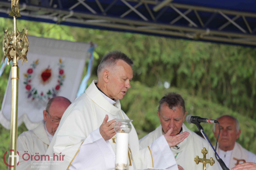 Végül Pál József Csaba temesvári püspököt idézte, aki az elmúlt napokban a Debrecen-Nyíregyházi Egyházmegye papjainak tartott lelkigyakorlatot. A lelkigyakorlat-vezető egy filozófust idézve mondta: ha az égre mutatok, a bölcs ember nem az ujjat nézi, hanem az eget. Palánki püspök atya hangsúlyozta, a több mint ötszáz ember nem miatta jött el ünnepelni, hanem hogy az égre nézzenek, és meglássák Istent.