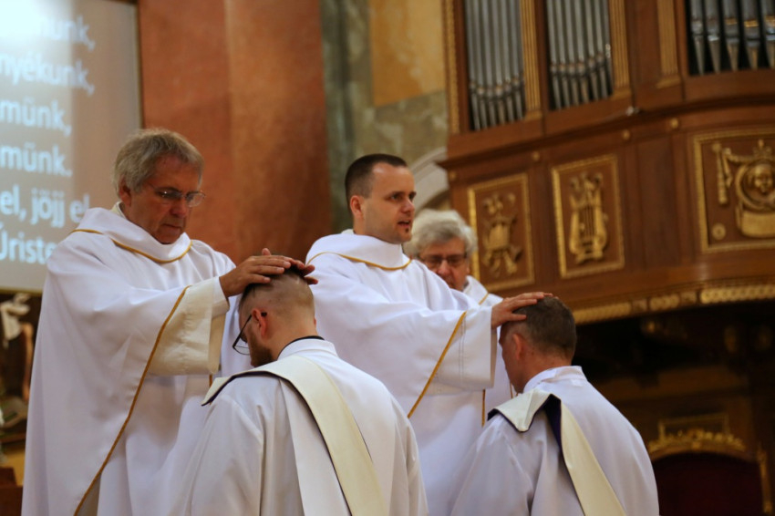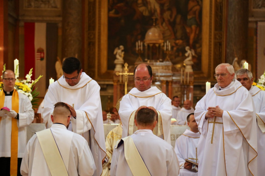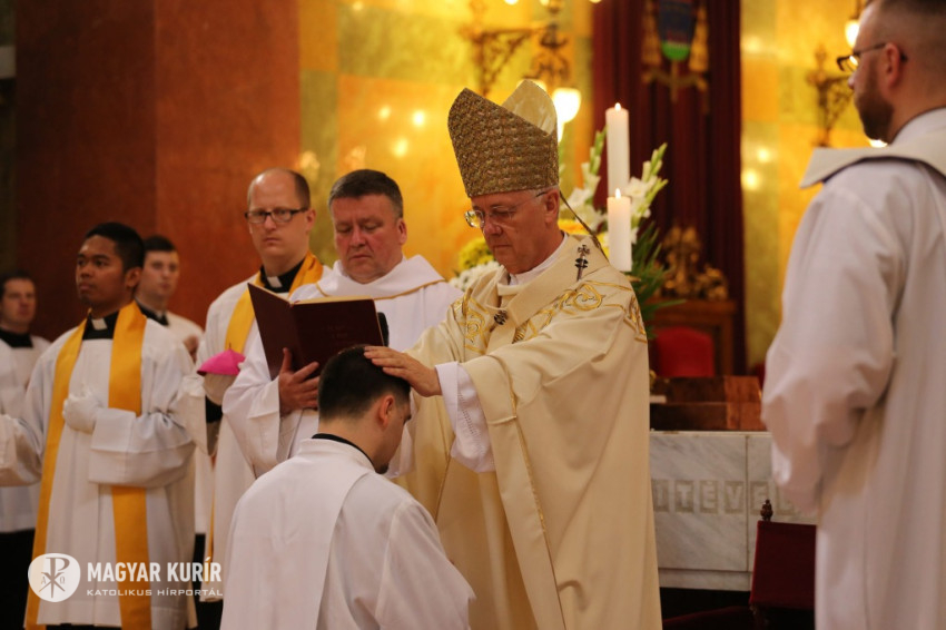 Ezután következett a diakónusszentelés, majd a papszentelés. A papszentelés során a szentséget kiszolgáltató egri érsek a felszentelő ima és kézrátétel által adta át a Krisztustól kapott áldozópapi hatalmat és küldetést. Ezt követően az egyházmegye papjai kézrátétellel fogadták be az új áldozópapokat az egyházmegye papi közösségébe. Az újmisések a főpásztorral és a jelenlévő papsággal együtt mutatták be a szentmisét.