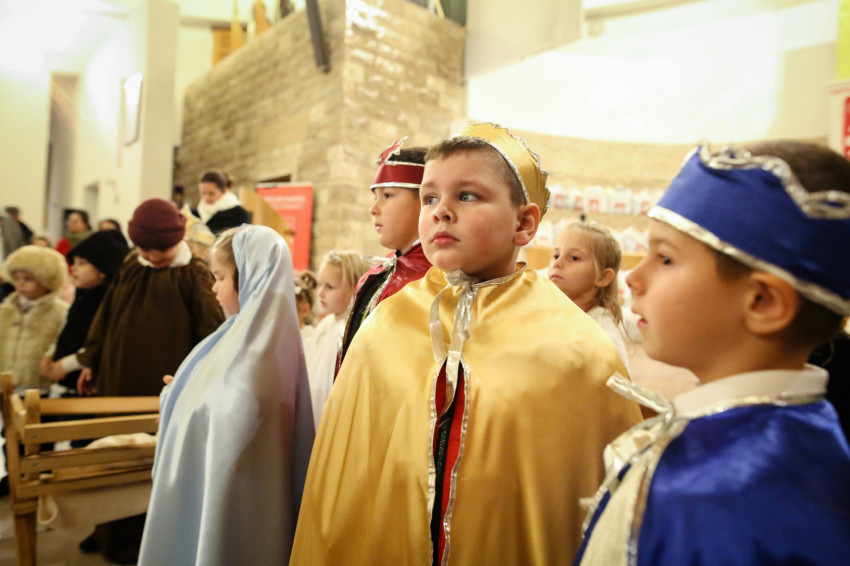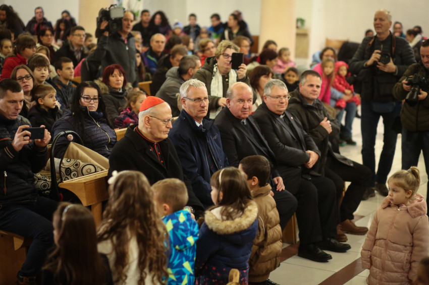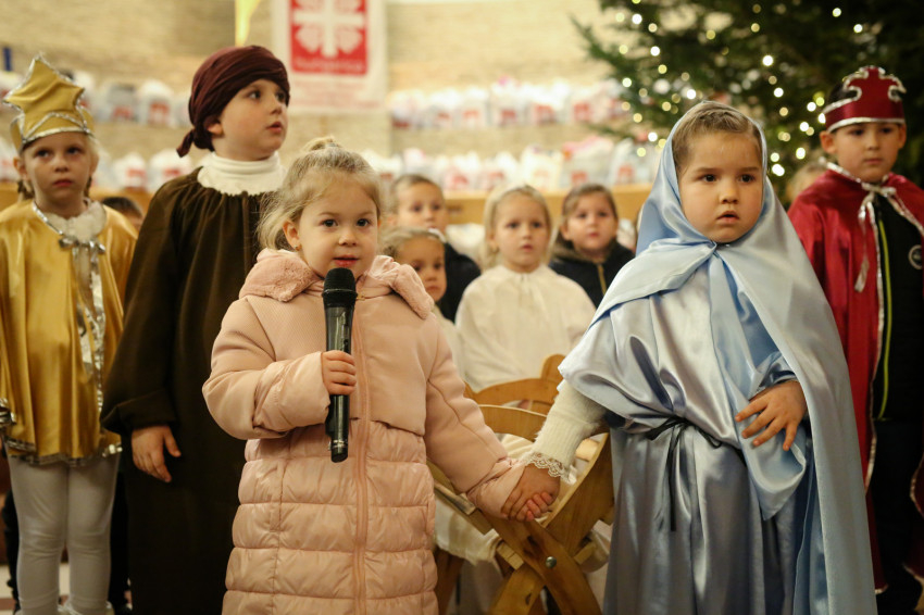 Erdő Péter bíboros köszöntője és az ajándékok kiosztása előtt a Jászok Együttes zenés műsorát és a lajosmizsei óvodások előadását hallgathatták meg a templomot megtöltő gyerekek és az őket kísérő szülők. A főpásztor a műsor után azt néhány szóval megköszönte. Mint mondta, látva a kis angyalok, a pásztorok, a háromkirályok és a többi szereplő arcát, valóban angyalok lettek, hiszen szerepüket játszva hétköznapjaik fölé emelkedtek kicsit. Így vagyunk ezzel mindannyian, erre való az ünnep: emelkedjünk a hétköznapok fölé – folytatta a bíboros.