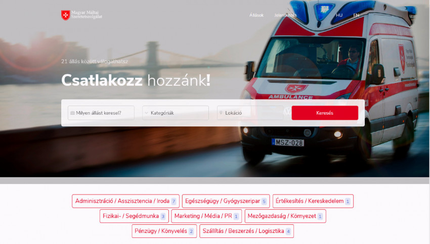 Az ország egyik legnagyobb karitatív szervezete által indított önálló álláskeresési portálon a Máltai Szeretetszolgálatnál betölthető pozíciók között kereshetnek, akik a szociális ágazatban kívánnak elhelyezkedni. A szervezet állásokat kínál az ágazat számos területén, így megtalálhatók a portálon a szociális munkához kapcsolódó adminisztrációs pozíciók, egészségügyi állások, a termelő üzemek termékeinek értékesítéséhez kötődő kereskedelmi és vendéglátói lehetőségek, pénzügyes pozíciók, de fizikai és segédmunkát is kínál a felületen a szeretetszolgálat.