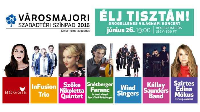 A Szabad Tér Színház tavaly rendezte meg első alkalommal a drogellenes világnapi koncertet neves hazai sztárok közreműködésével a Margitszigeti Szabadtéri Színpadon. Az idei rendezvénynek a Városmajori Szabadtéri Színpad ad otthont – mondta az igazgató.