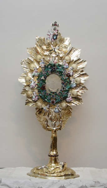 A barokk monstrancia az Őseink hite című kiállítás legrégebbi darabja. A kiállítás megközelíthető a Szent Anna-székesegyházban a hittantermek folyosójáról. Látogatható: szerdán, szombaton és vasárnap 9-től 12-ig és 14-től 17.30-ig. Csoportoknak bejelentkezés esetén más időpontot is biztosítanak.