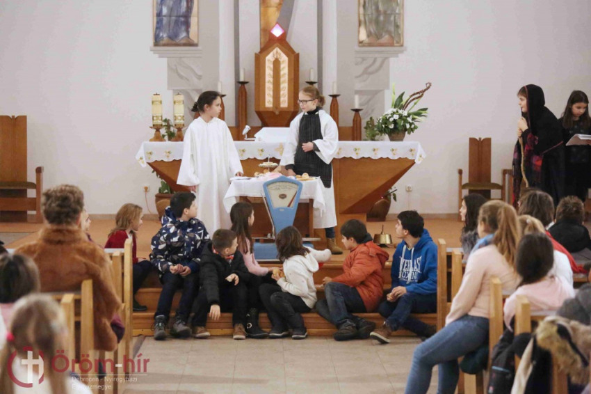 A gyermekek egy kisfilmet is láthattak az ostyakészítésről, valamint egy elsőáldozási emlékkiállítás is. Ezután a Megtestesülés-plébánia hittanosainak dramatikus játéka a szentmisére irányította a figyelmet.