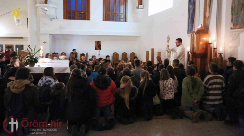 A hittanosok készülete a 2020-as budapesti Nemzetközi Eucharisztikus Kongresszus jegyében zajlik: ők idén – a kongresszust megelőző évben – veszik magukhoz először az Oltáriszentséget. Közös örvendezésük, a szentségi Jézus előtti őszinte, odaadó imájuk kegyelmi erőteret teremtett a délutáni órákban, amiből a jelenlévő hitoktatók, lelkipásztorok, felnőtt kísérők is részesedhettek. Az egyházmegyei programsorozatot Tóth László, a Megtestesülés-templom plébánosa és munkatársai szervezik.