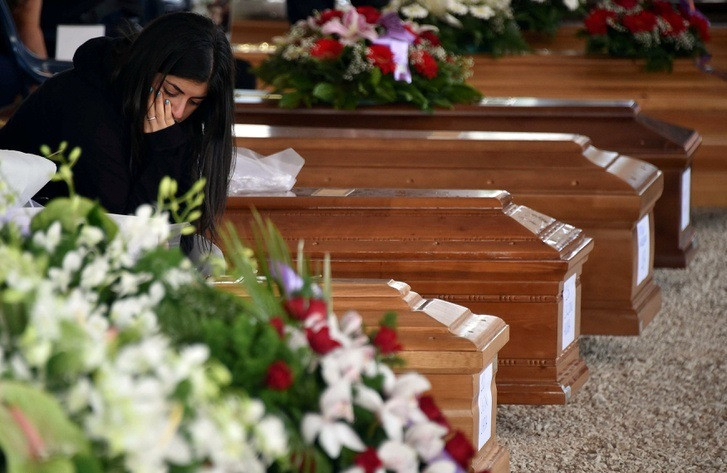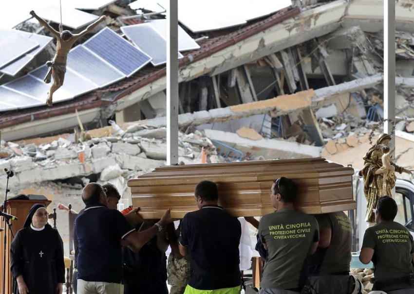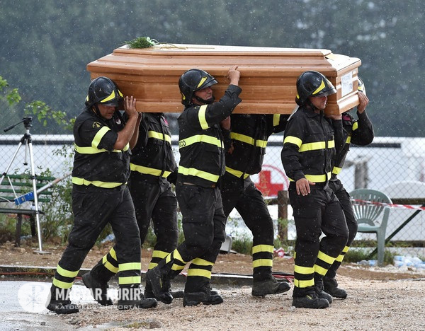 A múlt szerdai 6,2-es erősségű földrengésben összesen 292-en vesztették életüket Amatricében és a környék több más településén. Közülük harmincöttől szombaton a megyeszékhely, Ascoli Piceno sportcsarnokában vettek végső búcsút. Amatricében csak 37 koporsó volt a szertartáson, a többi elhunytat Rietiben vagy Rómában temették el.