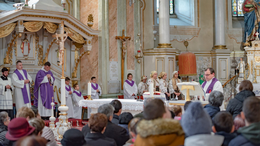 Az ünnepi szentmisét 18 órától Urbán Erik, az Erdélyi Ferences Rendtartomány provinciálisa mutatta be. Prédikációjában kiemelte: jó lenne, ha olyan füleink lennének, mint azoknak a katonáknak, akiket elküldtek, hogy elfogják Jézust; ők a maguk módján hitvallást tettek, hiszen nemcsak hallották, amit Jézus mondott, hanem meg is értették. Ők maguk mondták: „Ember még így nem beszélt.”