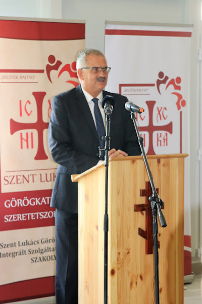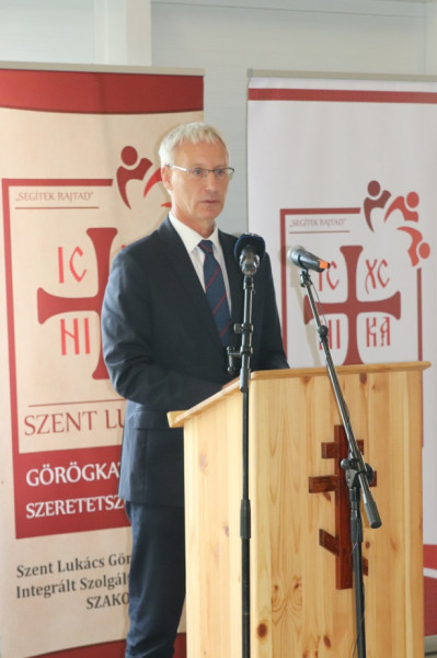 Az ünnepi beszédet Soltész Miklós, a Miniszterelnökség egyházi és nemzetiségi kapcsolatokért felelős államtitkára mondta, aki nagyobb kontextusba helyezve az ünnepséget, beszámolt arról a karitatív tevékenységet végző egyházak és szervezetek támogatását átfogó koncepcióról, melynek része a ma átadott épület is. Az elmúlt években ebben a projektben több mint harminc településen negyvenhat helyszínen építettek tíz nagy logisztikai és harminchat regionális központot a rászorulók megsegítésére, melyben kilenc karitatív, többnyire egyházi szervezet vett részt.