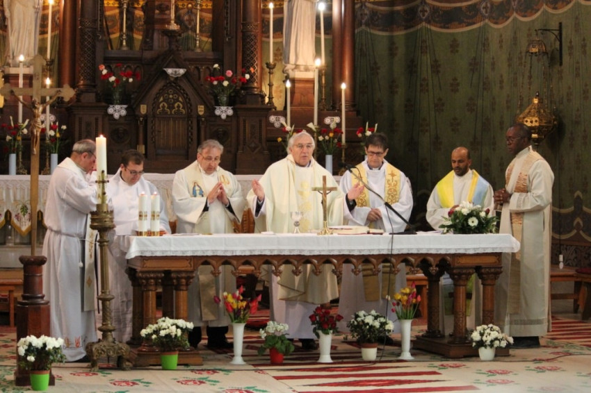 Az első nap délutánján a csoport papjai szentmisét mutattak be a nagyváradi Nagyboldogasszony-székesegyházban Böcskei László megyéspüspökkel és Kovács Zsolt irodaigazgatóval. A liturgia után a vendégek megtekintették az egyházmegye kincstárát, benne a nagyváradi Szent László-hermával, majd felkeresték a Szent László-templomot, amit a kommunista diktatúra idején a hívek élőláncot alkotva mentettek meg a lerombolástól. A templomot Pék Sándor plébános mutatta be.