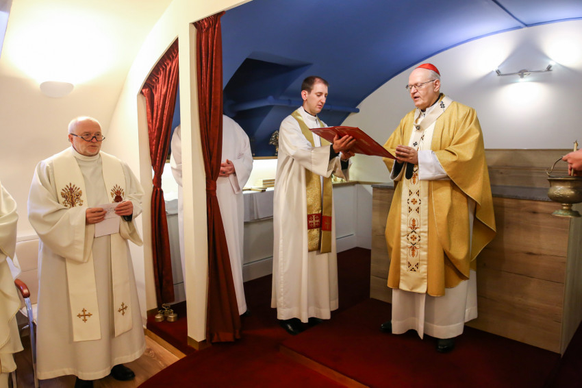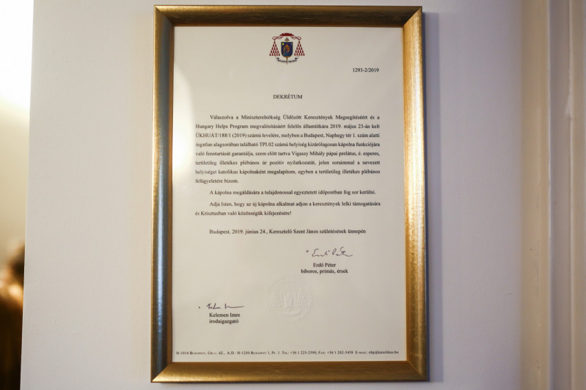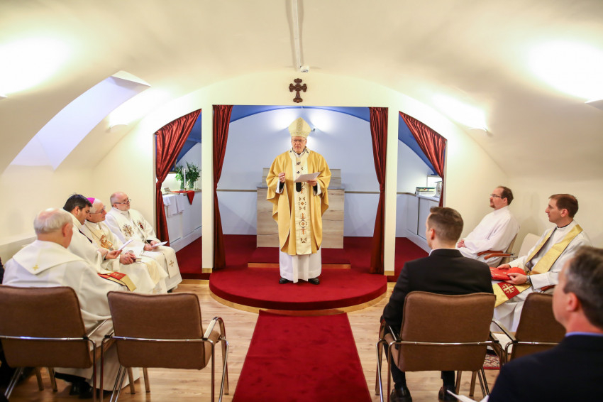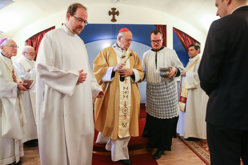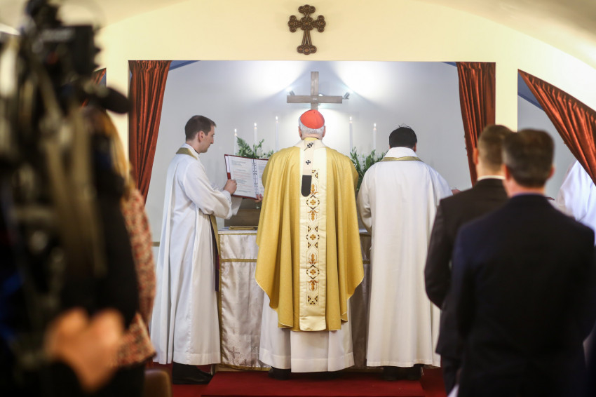 A kápolnát Erdő Péter áldotta meg. A liturgiát énekével kísérte az államtitkárság egyik munkatársának kezdeményezésére összeállt szkóla.