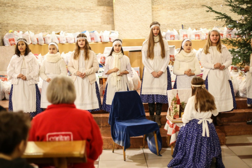 Az Esztergom-Budapesti Főegyházmegye karitászcsoportja által rendezett eseményen közel kétszázötven nehéz körülmények között élő gyermek kapta meg azokat az csomagokat, melyeket a Katolikus Karitász felhívására gyerekek állítottak össze.