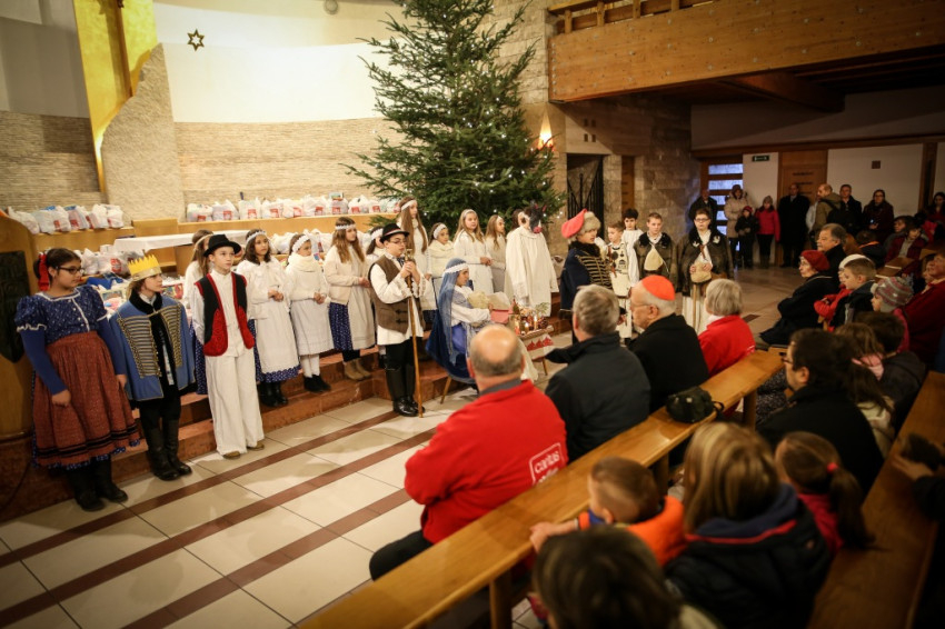 A rendezvényen Écsy Gábor köszöntötte a gyermekeket és hozzátartozóikat. „Ahogy közeledünk a karácsonyhoz, a szentmise olvasmányai egyre inkább kibontakoztatják annak a titoknak a lényegét, akire várunk, akinek az érkezésére készülünk.” Márai Sándor sorait idézte a Katolikus Karitász országos igazgatója: „Ha az ünnep elérkezik életedben, akkor ünnepelj egészen... Keféld meg hajad vizes kefével. Tisztálkodjál belülről és kívülről. Felejts el mindent, ami a köznapok szertartása és feladata. Az ünnepet nemcsak a naptárban írják piros betűkkel. Nézd a régieket, milyen áhítatosan, milyen feltétlenül, milyen körülményesen, mennyi vad örömmel ünnepeltek!... Az ünnep legyen ünnepies…, legyen benne valami a régi rendtartásból, a hetedik napból, a megszakításból, a teljes kikapcsolásból, legyen benne áhítat és föltétlenség. Az ünnep az élet rangja, felsőbb értelme. Készülj föl reá, testben és lélekben. S nemcsak a naptárnak van piros betűs napja. Az élet elhoz másféle, láthatatlan ünnepeket is. Ilyenkor felejts el mindent, figyelj az ünnepre.”