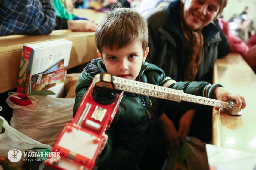 A bíborosi köszöntő után Erdő Péter és Mádl Dalma személyre szóló ajándékokat adtak át a jelen lévő, csaknem 300 gyereknek. A Budapest több plébániájáról érkező gyerekek között volt például Duka Jázmin és Blanka is, akik a 8. kerületi Béke Királynéja-templomhoz tartoznak. Csomagjaikban babákat, társasjátékokat, plüss állatkákat, írótáblát, és karácsonyi bejglit is kaptak.