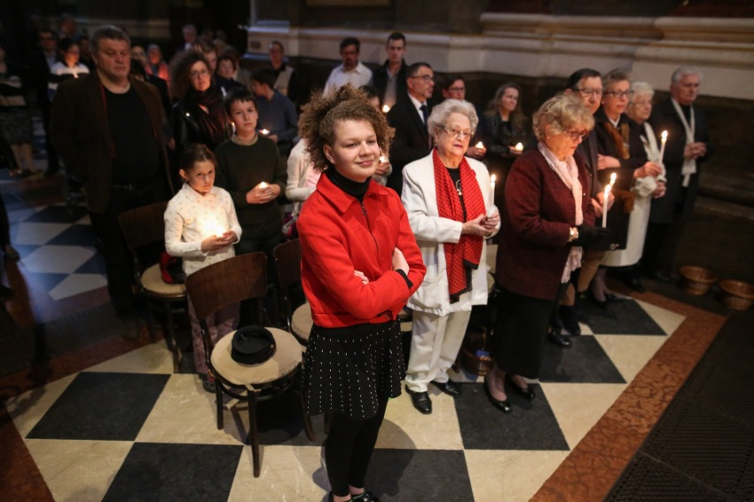 Miután a bazilikában a húsvéti gyertyáról meggyúltak a fények, felhangzott az Egyház leggyönyörűbb éneke, az Exultet, a Húsvéti örömének. A húsvéti örömének az ünnep tartalmát fogalmazza meg, a fényt, amely a feltámadást és a megváltást jelképezi.