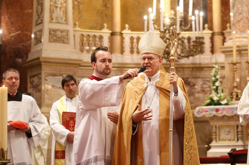 A szentbeszédet követően Erdő Péter megáldotta a keresztvizet, majd tizenhárom felnőttet keresztelt meg, ezt követően részükre kiszolgáltatta a bérmálás szentségét, a jelenlévő hívek pedig megújították keresztségi fogadalmaikat.
