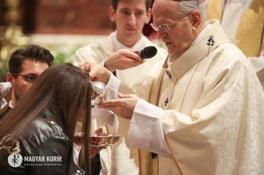 A szentbeszédet követően Erdő Péter megáldotta a keresztvizet, majd tíz felnőttet keresztelt meg, ezt követően részükre és még egy fő számára kiszolgáltatta a bérmálás szentségét, a jelenlévő hívek pedig megújították keresztségi fogadalmaikat.