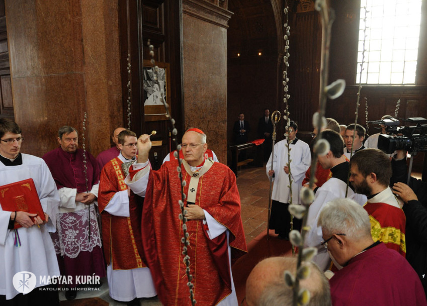 Az Erdő Péter bíboros által virágvasárnapon az esztergomi bazilikában celebrált szentmise a barkák ünnepélyes megáldásával kezdődött, melyet Jézus jeruzsálemi bevonulására emlékező körmenet követett.
