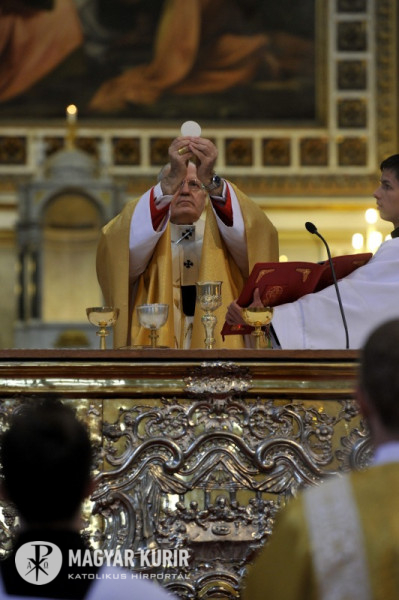 Az egyház nagycsütörtök estéjén az utolsó vacsorára emlékezik. „Hálát adunk Krisztusnak, hogy testét és vérét hagyta ránk az Oltáriszentségben. Megrendülten mondunk neki köszönetet a megváltás egész művéért. A mai éjszakán osztozzunk szenvedésében és szorongásában, magányában az Olajfák hegyén, ahol a tanítványok újra meg újra elaludtak, majd szétfutottak, amikor Mesterük fogságba esett. Imádsággal engeszteljük őt és fejezzük ki szeretetünket iránta.” – mondta a főpásztor.
