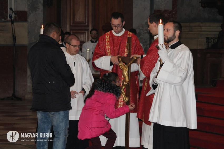 A szertartás kezdetén Erdő Péter bíboros leborult az oltár előtt, majd következett az igeliturgia, melynek részeként a szenvedéstörténetet, a passiót közösen énekelve adta elő a bazilika énekkara és az esztergomi Érseki Papnevelő Intézet növendékei, drámai módon idézve fel Krisztus szenvedését, az Isten irántunk való szeretetének titkát.