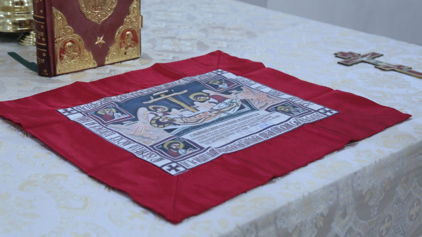 Az ereklyekendő, melybe egy apró ereklyedarabkát varrnak, Krisztus keresztről történő levételét és tiszta gyolcsba göngyölését ábrázolja, a bizánci rítusú szertartásban ez a jelenet ismétlődik meg a nagybemenet végén, amikor a pap az oltáron fekvő kihajtott antimenzionra helyezi el az adományokat.