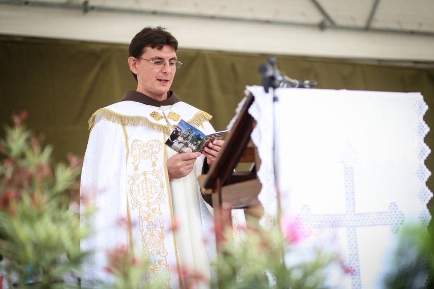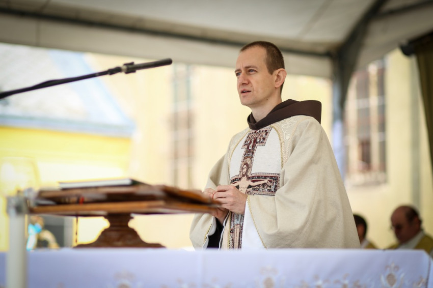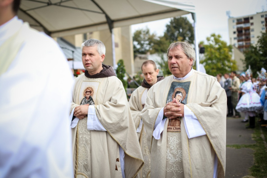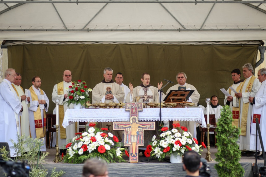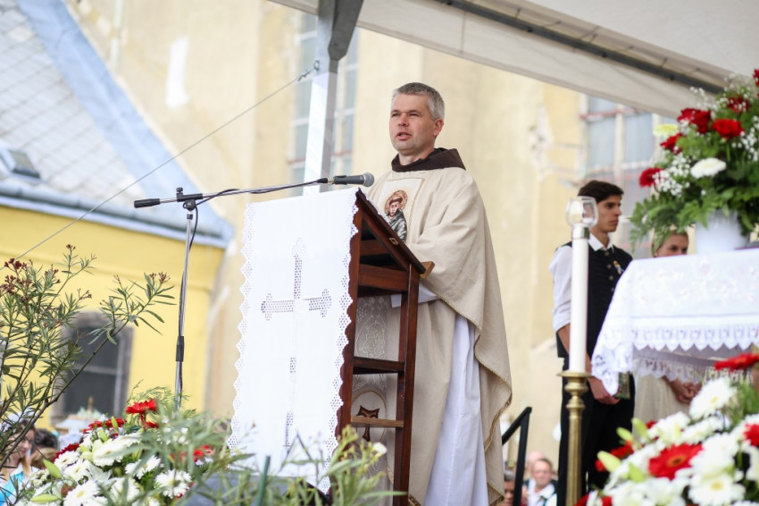 A szentlecke – Pál apostolnak a zsidókhoz írt leveléből vett részlet – úgy beszélt Jézusról, mint aki a szenvedésből engedelmességet tanult. Nézzünk Jézusra a kereszten: az életét adja értünk. Egész életében jelen van az engedelmesség, mégis fejlődnie kell benne egészen addig, hogy a halált is engedelmesen fogadja el, mint a megváltás útját – folytatta homíliáját a gyöngyösi búcsún a ferences tartományfőnök.