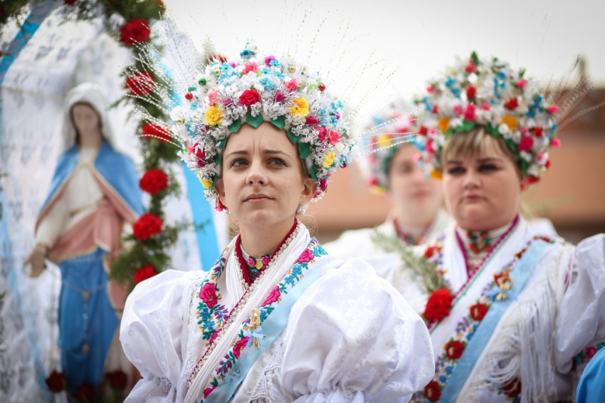 A „Mária-hordozó” fiatalokat tizenegy évvel ezelőtt gyűjtötte egybe először a gyöngyösi búcsú alkalmából Kárpáti Kázmér ferences testvér. Azóta évente találkoznak, hozzák településük szépen feldíszített, virágokkal ékesített hordozható Mária-szobrát. Évről évre különleges látvány, amint fiatalok, gyerekek, felnőttek, idősek szép, díszes népviseleteikben felvonulnak, méltóságteljesen és látható büszkeséggel, és vállukra emelik a Mária-szobrokat, így fejezik ki tiszteletüket a Fájdalmas Szűzanya iránt, akinek kegyszobra a gyöngyösi ferences templom oldalkápolnájában található. Az Aranypietának is nevezett kegyszobor 1680 körül készült. A Jézus oldalán és kezén található sebhelyek mintha édesanyja, Mária testével is összeforrnának, kifejezve Isten anyjának Fiával közösen vállalt szenvedését.